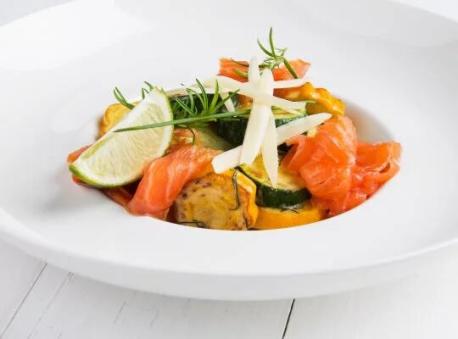 Cuketa na masle v kôprovej omáčke s údeným lososom a parmezánom