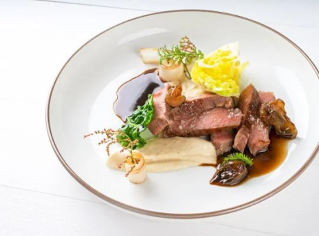 Entrecôte, pyré z čierneho koreňa, kapusta, glazované šalotky, madeira sauce