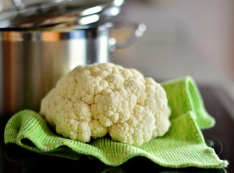 Karfiol rozoberieme na ružičky a uvaríme v osolenej vode, roztlačíme na jemnú kašu.
