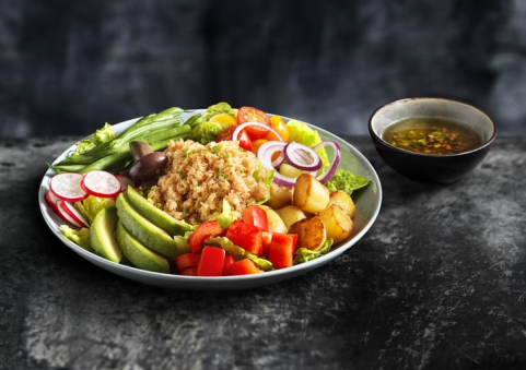 4Do bowl misky navrstvíme zeleninu, avokádo, olivy, zemiaky a na záver GARDEN GOURMET® Vuna.